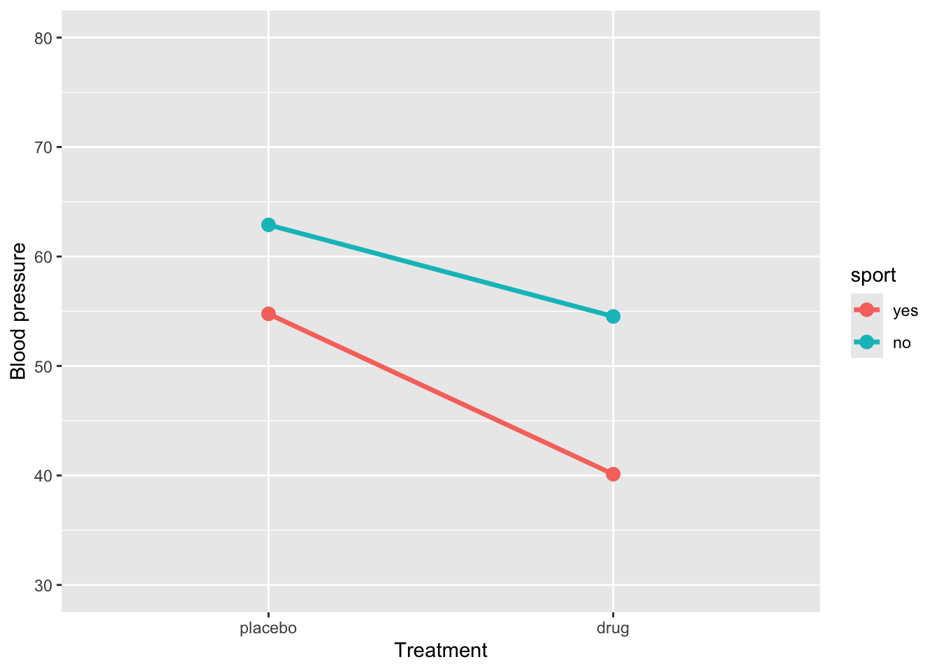 labs(y = "Blood pressure", x = "Treatment")Warning: Using `size` aesthetic for lines was deprecated in ggplot2 3.4.0.